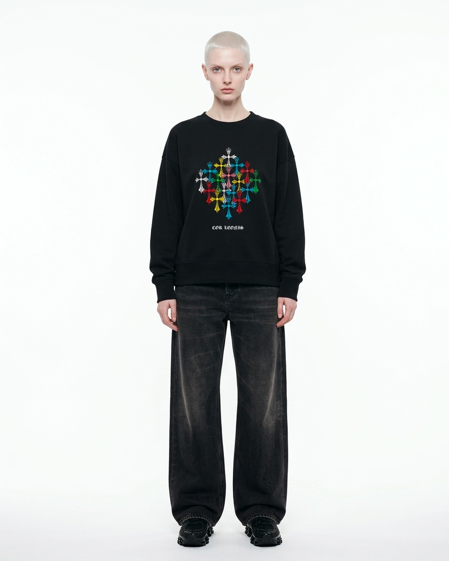 Insignia Crewneck Black Front View — Cor Leonis Gothic Streetwear SS26